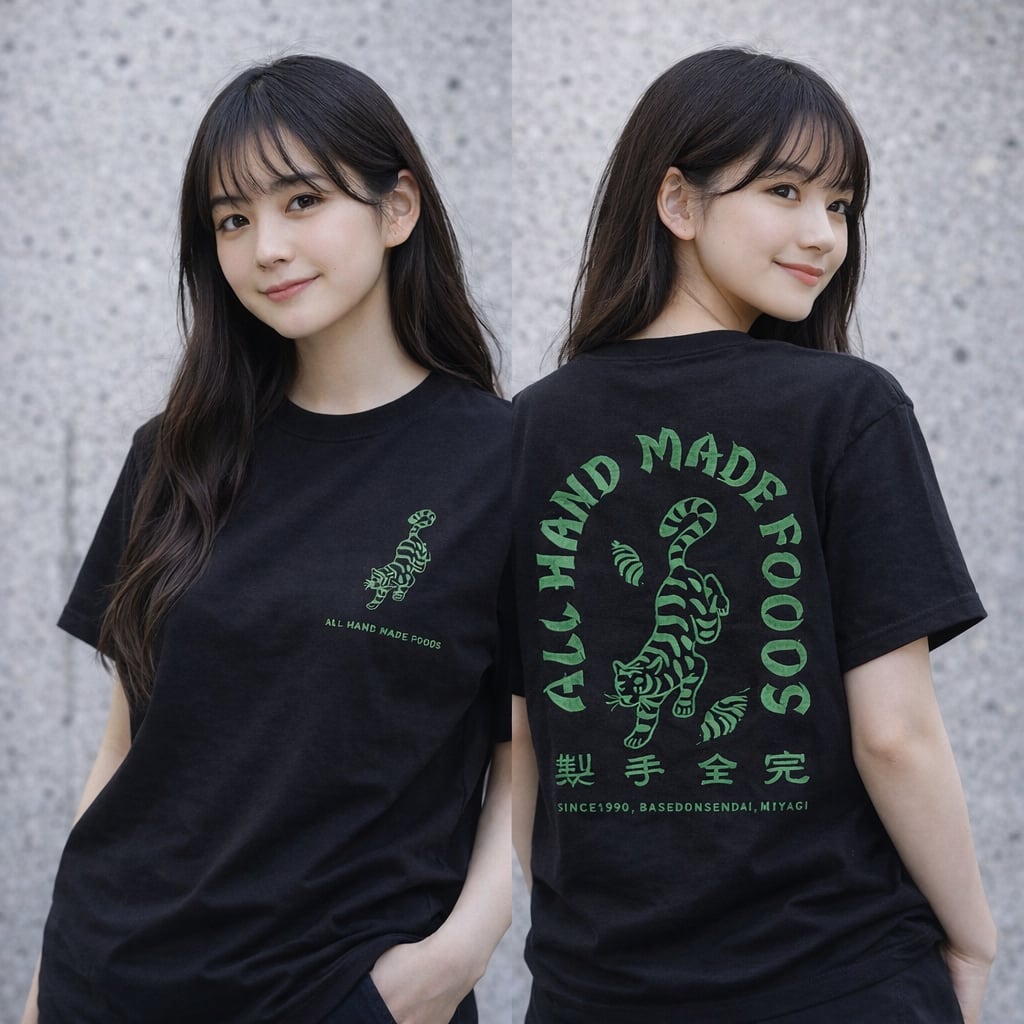“ALL HAND MADE FOODS ”(全て手作り)をベースにデザインしたTシャツです。